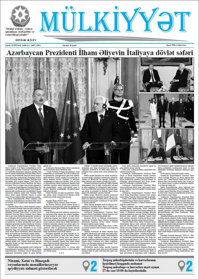 Əmlak Məsələləri Dövlət Xidmətinə məxsus "Mülkiyyət" qəzetinin və "Daşınmaz Əmlak Bülleteni" jurnalının fəaliyyəti ilə bağlı hüquqi prosedurlara başlanılıb.