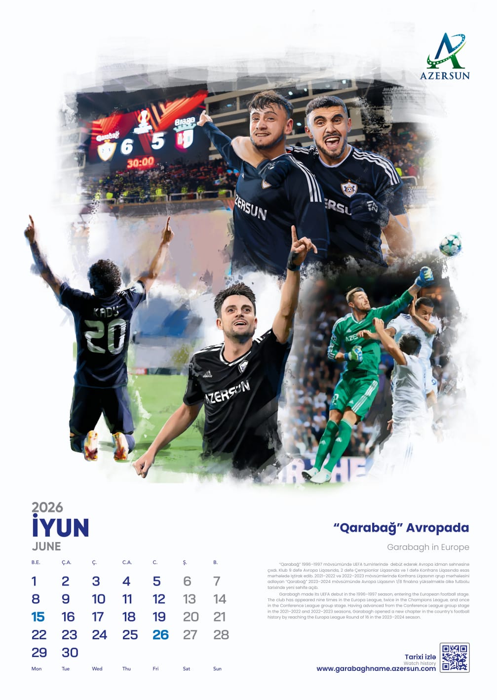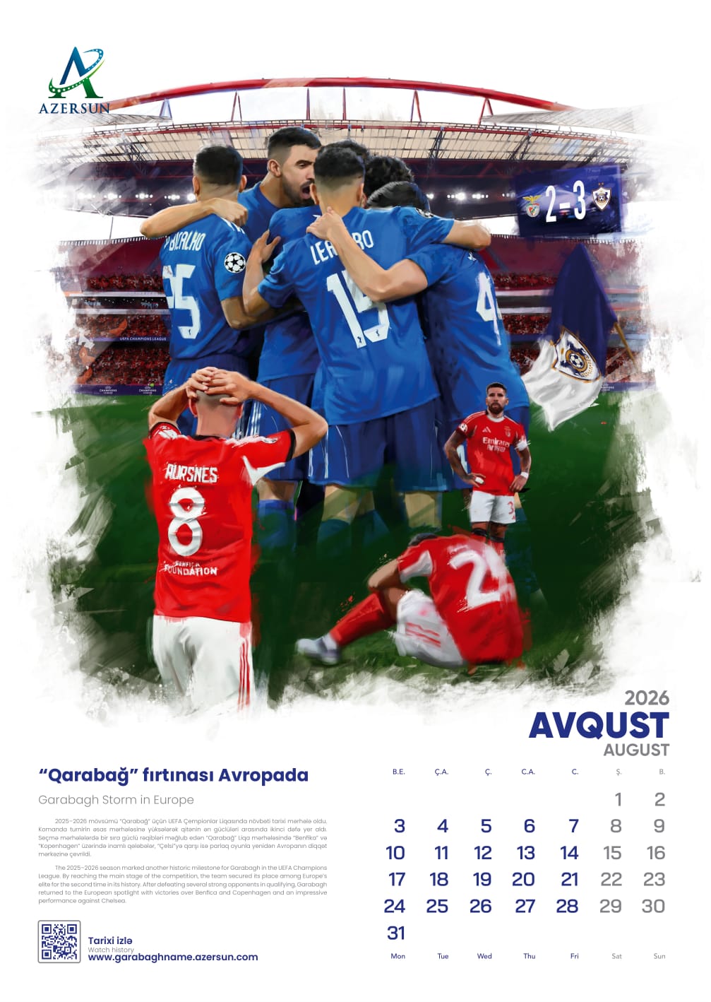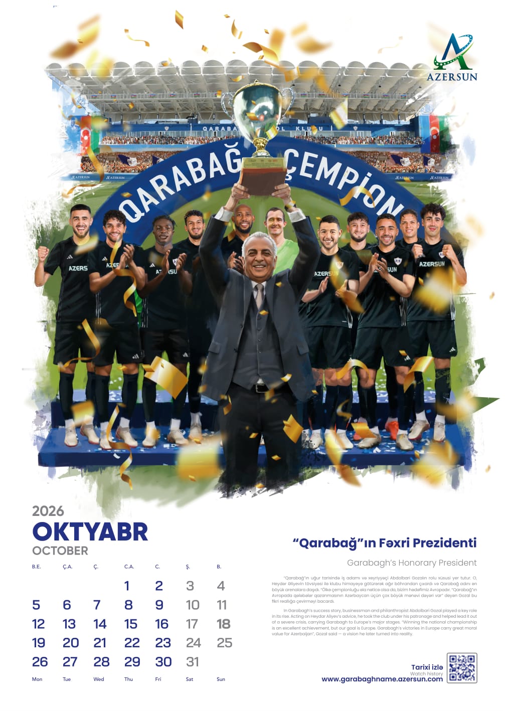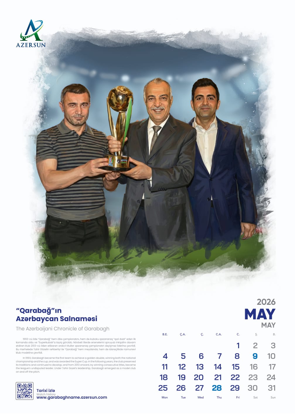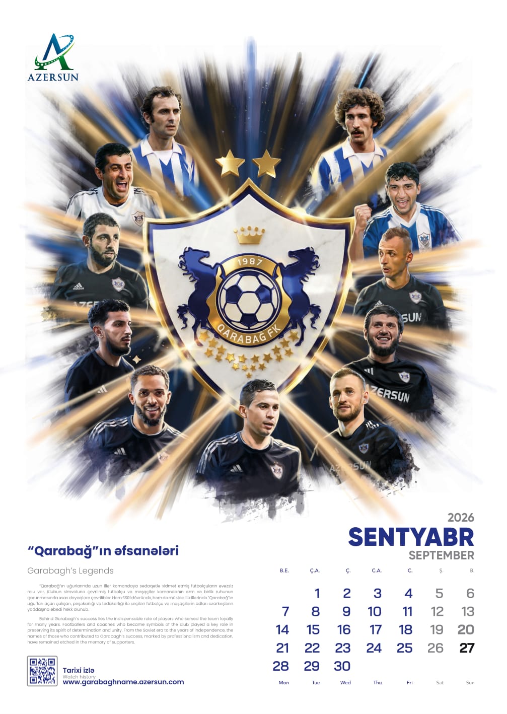 2026-cı il üçün hazırlanan bu təqvim son illərdə futbol sahəsində qızıl dövrünü yaşayan "Qarabağ” futbol klubuna həsr olunub.