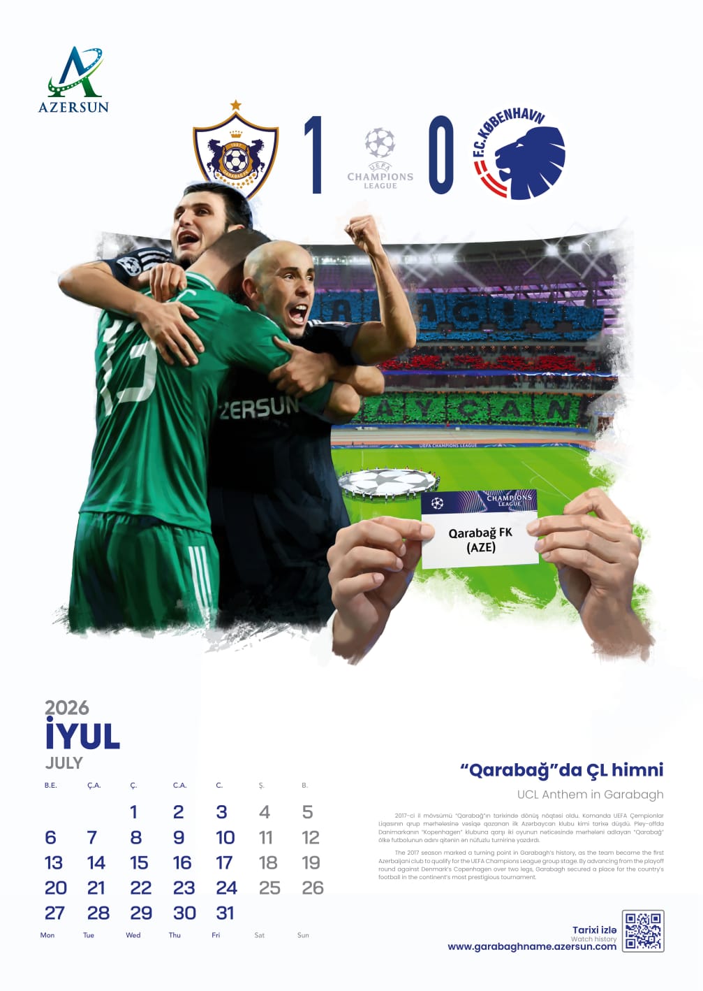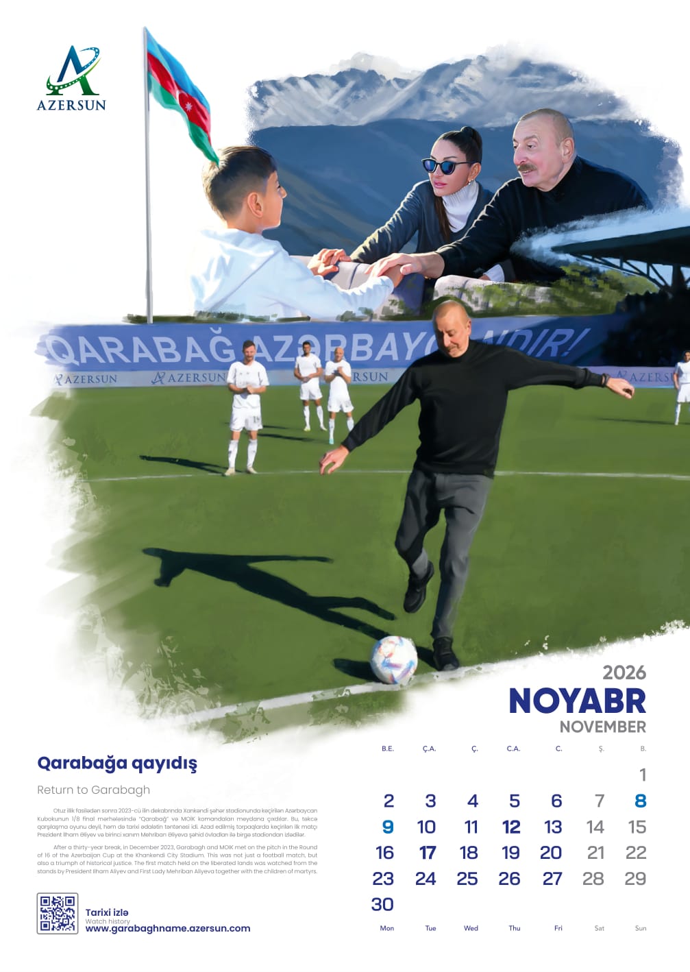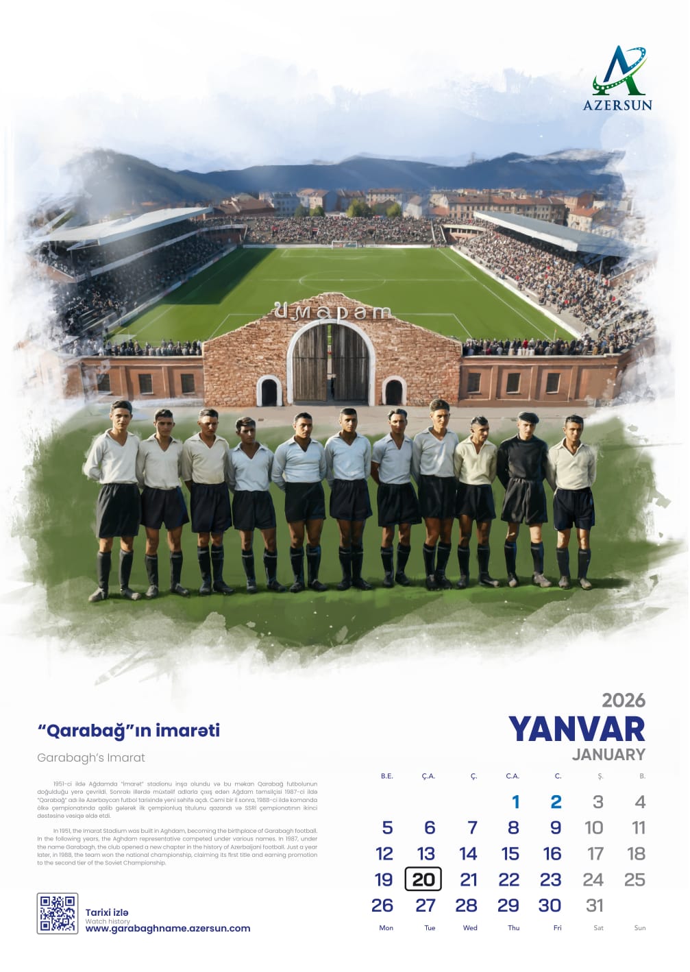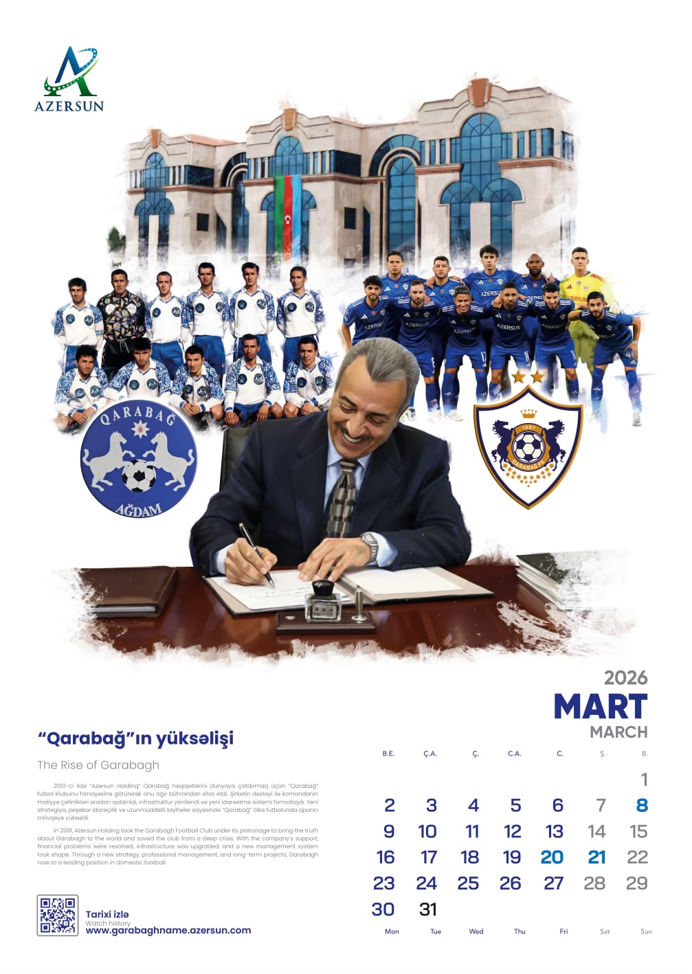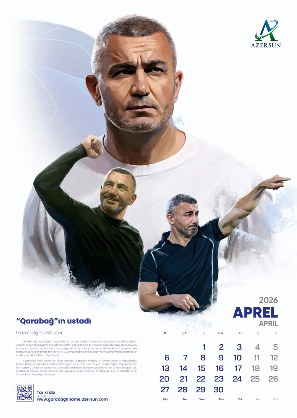2026-cı il üçün hazırlanan bu təqvim son illərdə futbol sahəsində qızıl dövrünü yaşayan "Qarabağ” futbol klubuna həsr olunub.