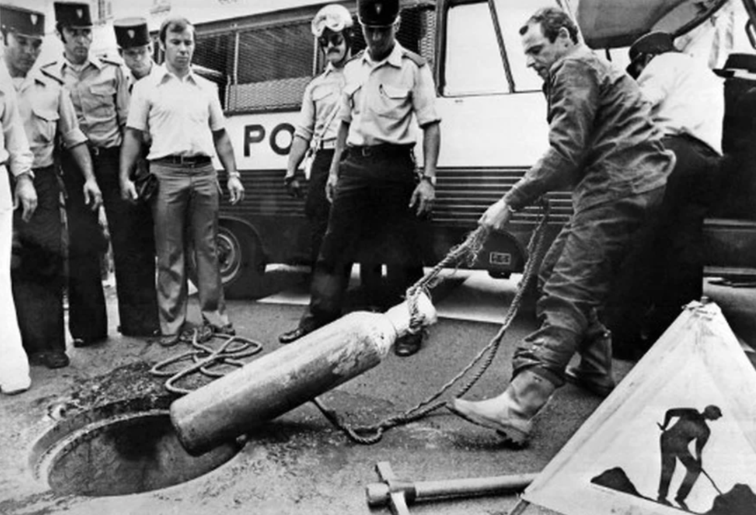 Albert Spadjari rəhbərliyindəki quldurlar kanalizasiya sistemindən 8 metrlik tunel qazaraq bankın seyfinə daxil olublar. Onlar iki gün ərzində 370 seyfi açmış, gedərkən isə "Silahsız, nifrətsiz, qəddarlıqsız” yazısı qoyublar.