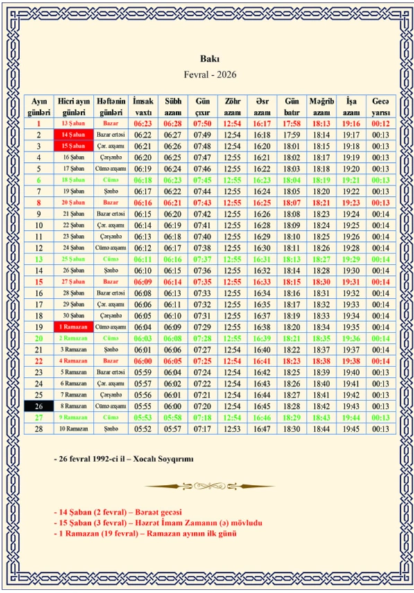 Qaynarinfo QMİ-nin təqviminə əsasən xəbər verir ki, Ramazan ayı fevralın 19-da başlayacaq.
