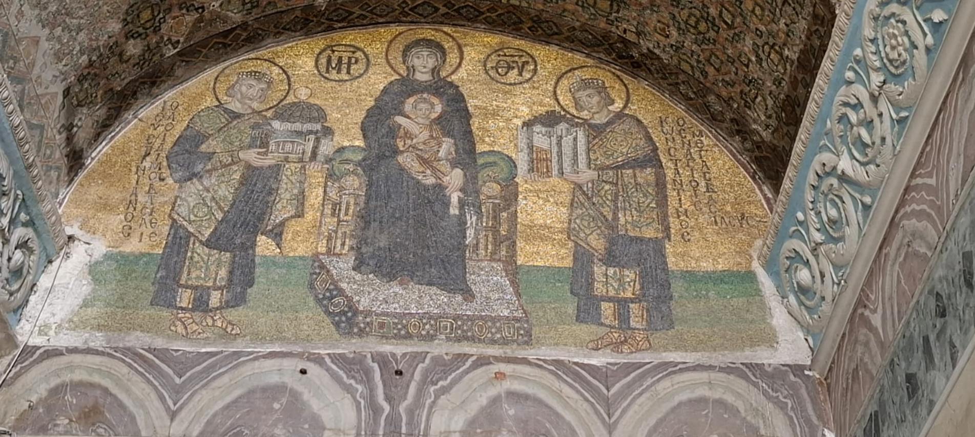 Aya Sofya mozaikaları Bizansın dini sənətinin ən gözəl nümunələrindən sayılır. Məsih, Məryəm və İsa mozaikaları hələ də böyük hissəsi ilə qorunub saxlanılıb. Mozaikaların bir hissəsi 15-ci əsrdə Osmanlı dövründə tavanın üzərində təbəqələnib, amma sonrakı restavrasiyalarda yenidən ortaya çıxarılıb.