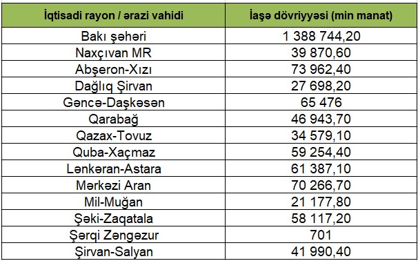 İqtisadi rayonlar üzrə isə iaşə dövriyyəsi belədir: