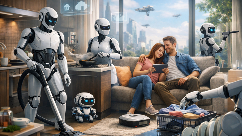 İngiltərənin Oksford Universiteti ilə Yaponiya Oçanomizu Universitetinin araşdırmalarına görə, 10 ildən sonra ev işlərinin 39 faizini robotlar idarə edəcək. İki universitetin 65 süni intellekt (AI) mütəxəssisləri 10 il ərzində ev işlərində avtomatlaşdırma gücünü necə formalaşdırmağı açıqlayıblar.