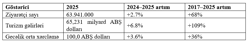 Türkiyənin 2025-ci il üzrə turizm nəticələrindən əsas göstəricilər: