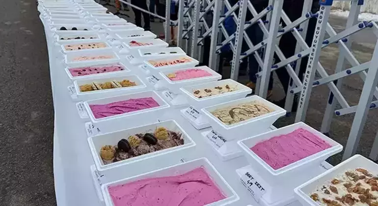 Türkiyənin Ordu şəhərinin Kabadüz rayonuna bağlı Çambaşı yaylasında, 25 yanvarda Celal Karaarslan və komandası tərəfindən hazırlanmış 1301 növ dondurma 125 metrlik masada sərgilənib.