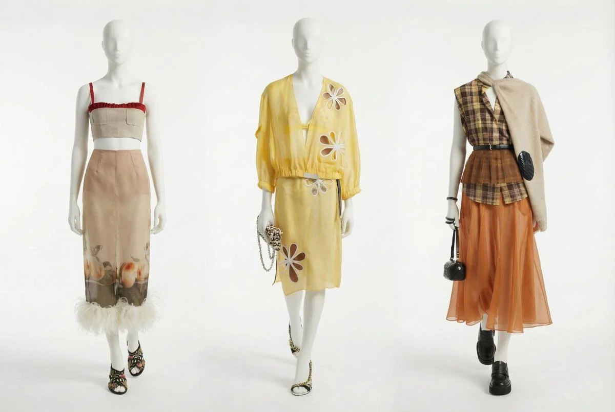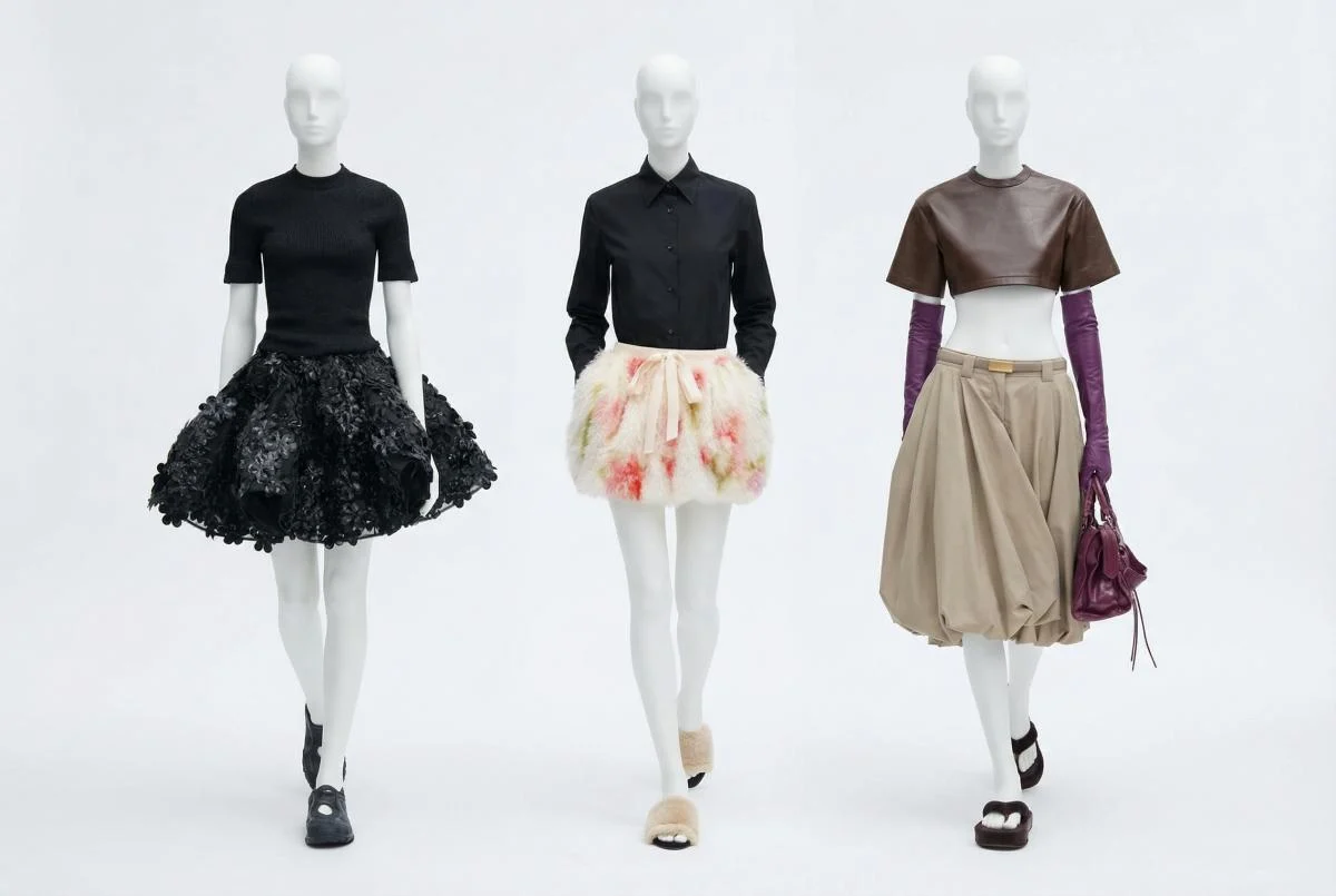 Podium modasında bəzi obrazlar qəsdən daha ekstravaqant təqdim edilir (məsələn, Chanel nümayişində rəngarəng lələkli ətək). Lakin tendensiya sonradan daha praktik formaya keçir: saçaqlı midi ətəklər, trikotaj modellər, trençlə birlikdə slip-ətəklər, asimmetrik qələm ətəklər və baletkalarla kombin edilən drapeli variantlar.