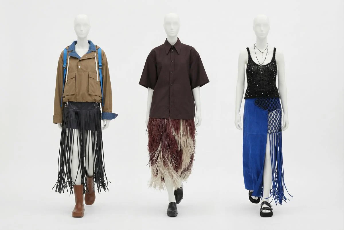 Saçaqlı ətəklər obrazı daha dinamik və oynaq göstərir. Minimalist üst geyimlərlə kombin edildikdə həm klassik, həm də modern effekt yaradır.
