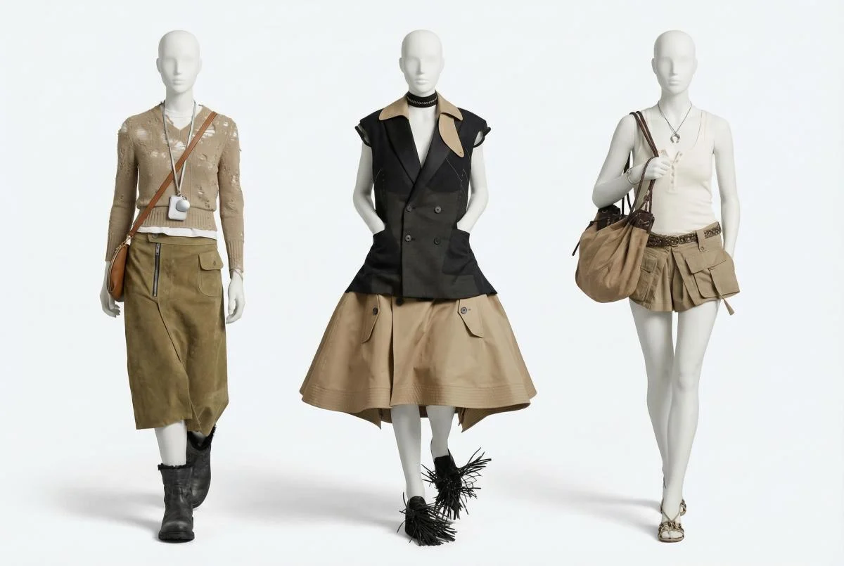 Cib detalları və qalın parçalarla hazırlanan yük stili ətəklər utilitar üslub yaradır. Xaki və neytral tonlar bu modeli daha gündəlik və praktik edir.