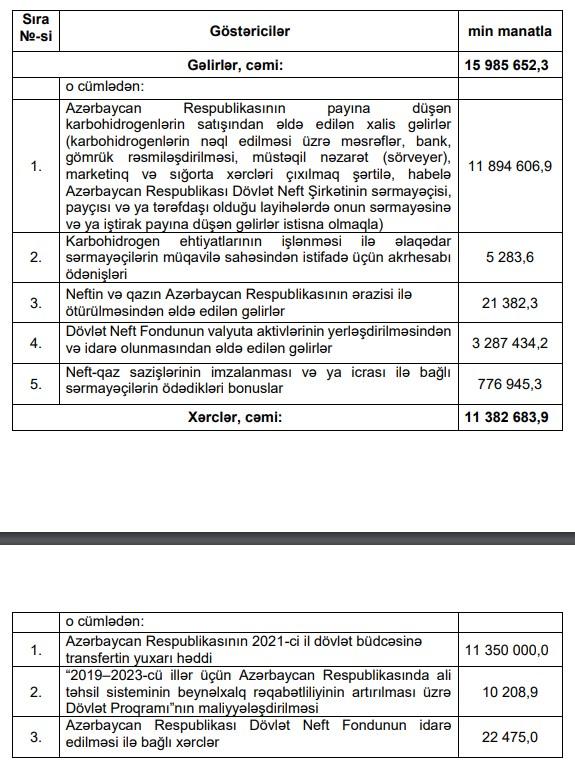 Qaynarinfo xəbər verir ki, sərəncama əsasən, Fondun gəlirləri 15 985 652,3 min manat, xərcləri isə 11 382 683,9 min manat və yaxud Fondun ötənilki büdcəsində nəzərdə tutulana nisbətən gəlirlər üzrə 199,8 faiz, xərclər üzrə 92,9 faiz səviyyəsində olmaqla təsdiq edilib.