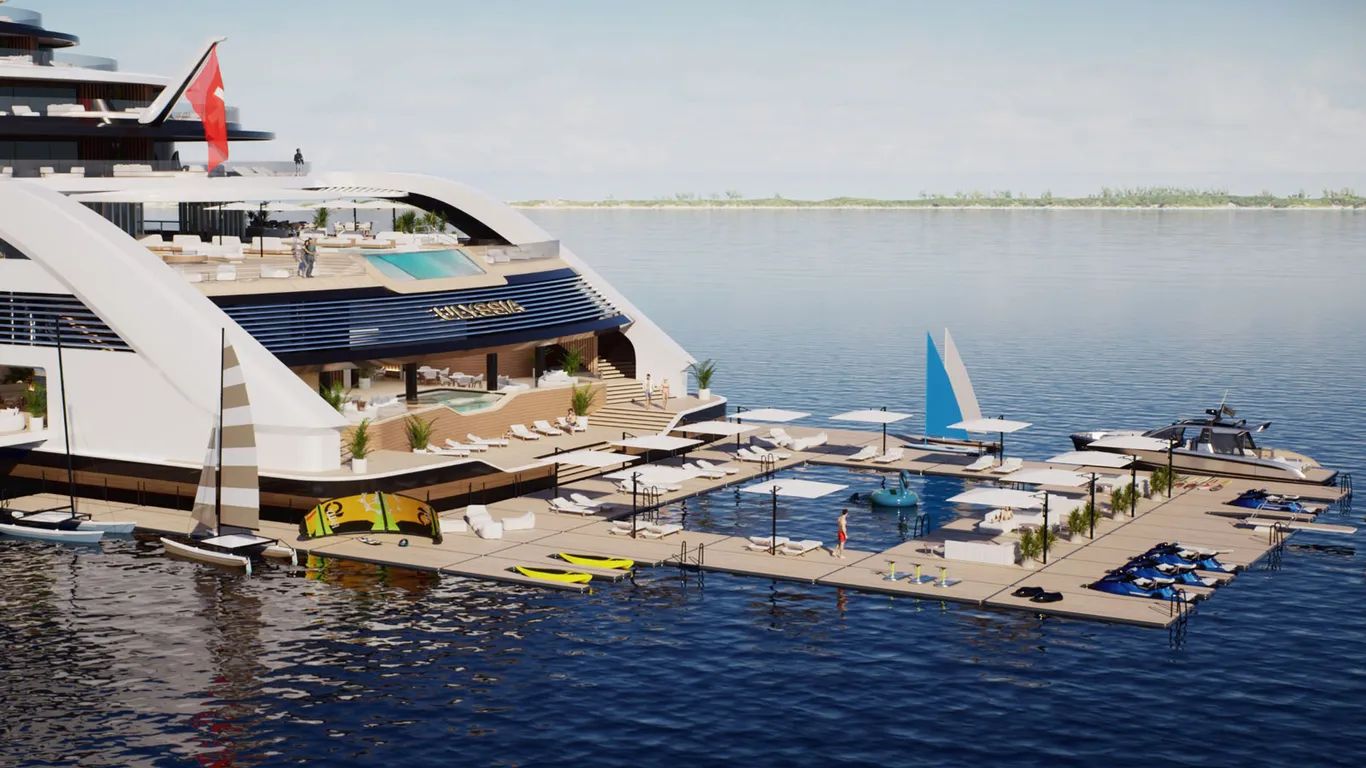Xüsusi diqqət təhsilə ayrılıb: yaxtada məktəblər və təhsil proqramları fəaliyyət göstərəcək, müxtəlif yaş və milli mənşəli sakinlər üçün beynəlxalq icma yaradılacaq. Bundan əlavə, şərab anbarı, restoranlar, yaxta-klub, qolf-klub, 600 metrlik qaçış yolu, çoxfunksiyalı kortlar, açıq və qapalı hovuzlar, iki mərtəbəli teatr, kitabxana, konfrans zalları, iki vertolyot və "Triton" sualtı aparatları olacaq.